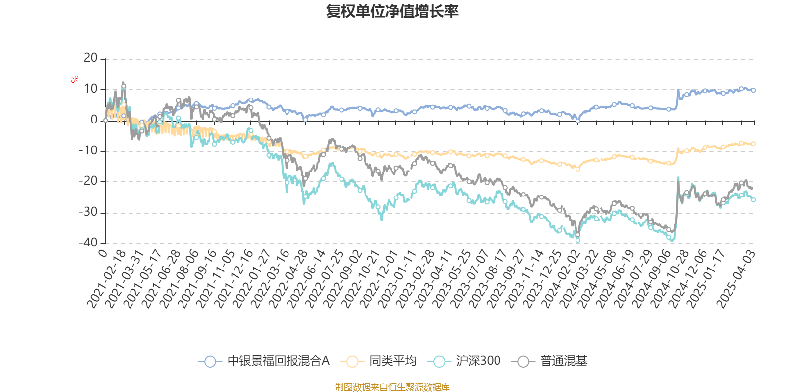 截至4月3日,中银景福回报混合A近三个月复权单位净值增长率为0.98%,位于同类可比基金339/670;近半年复权单位净值增长率为1.86%,位于同类可比基金313/670;近一年复权单位净值增长率为5.11%,位于同类可比基金284/667;近三年复权单位净值增长率为6.61%,位于同类可比基金226/559。