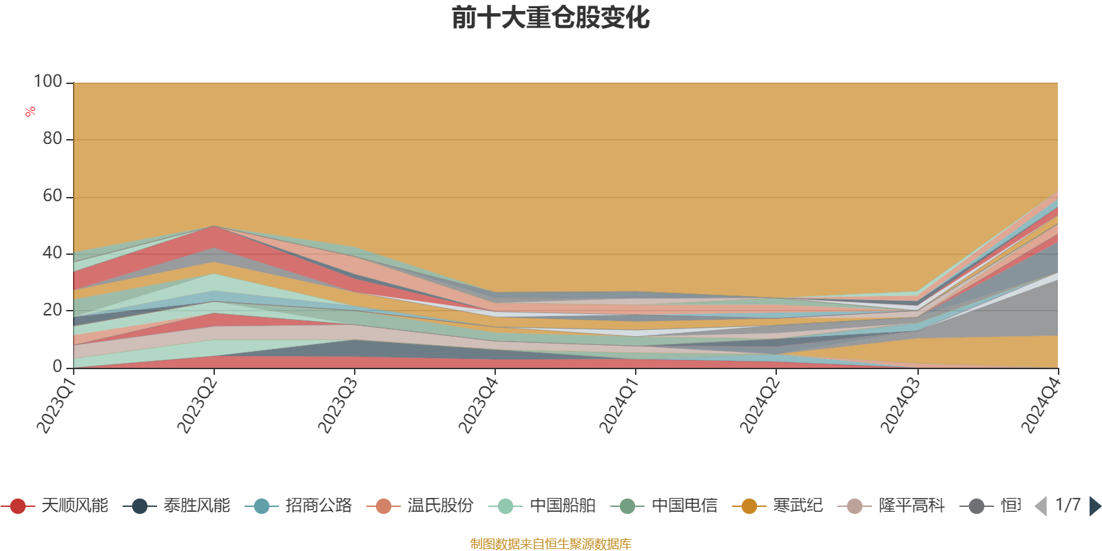 截至2024年末,基金十大重仓股分别是恒瑞医药、寒武纪、福晶科技、神火股份、安琪酵母、广州酒家、豪悦护理、仙琚制药、科伦药业、立高食品。